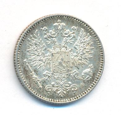 Лицевая сторона — российский двуглавый орел с гербом Великого княжества Финляндского на груди, оборотная — номинал и дата в венке из дубовых листьев. Проба — 750, нормативный вес — 2,55 грамма, гурт рубчатый.