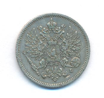 Лицевая сторона — российский двуглавый орел с гербом Великого княжества Финляндского на груди, оборотная — номинал и дата в венке из дубовых листьев. Проба — 750, нормативный вес — 1,27 грамма, гурт рубчатый.