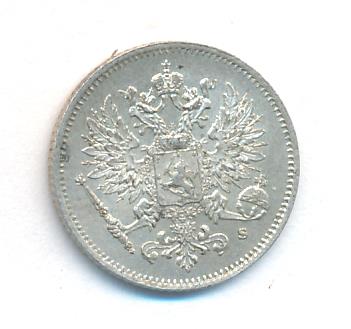 Лицевая сторона — российский двуглавый орел с гербом Великого княжества Финляндского на груди, оборотная — номинал и дата в венке из дубовых листьев. Проба — 750, нормативный вес — 1,27 грамма, гурт рубчатый.