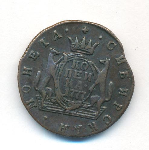 Лицевая сторона - два соболя поддерживают щит с обозначением номинала (копейка) под короной, надпись «СИБИРСКАЯ МОНЕТА». Оборотная — вензель Екатерины II в венке из пальмовой и лавровой ветвей. Гурт — шнур, вес — 6,55 грамма.