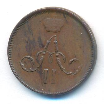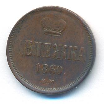 Лицевая сторона — вензель Николая I, оборотная — обозначение номинала (денежка) и дата. Нормативный вес — 2,56 грамма, гурт гладкий.