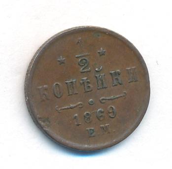 Лицевая сторона — вензель Александра II в венке из лавровой и дубовой ветвей; оборотная — обозначение номинала (1/2 копейки) и дата. Нормативный вес — 1,64 грамма, гурт рубчатый.