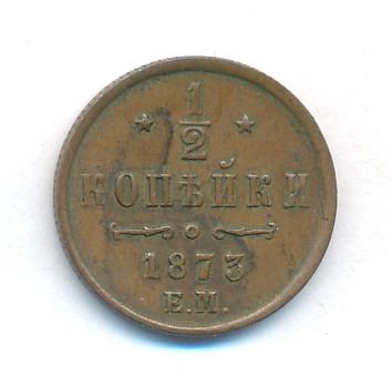 Лицевая сторона — вензель Александра II в венке из лавровой и дубовой ветвей; оборотная — обозначение номинала (1/2 копейки) и дата. Нормативный вес — 1,64 грамма, гурт рубчатый.