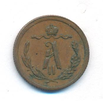 Лицевая сторона — вензель Александра II в венке из лавровой и дубовой ветвей; оборотная — обозначение номинала (1/2 копейки) и дата. Нормативный вес — 1,64 грамма, гурт рубчатый.