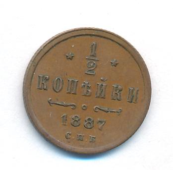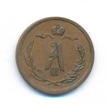 Лицевая сторона — вензель Александра II в венке из лавровой и дубовой ветвей; оборотная — обозначение номинала (1/2 копейки) и дата. Нормативный вес — 1,64 грамма, гурт рубчатый.