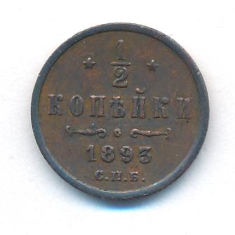 Лицевая сторона — вензель Александра II в венке из лавровой и дубовой ветвей; оборотная — обозначение номинала (1/2 копейки) и дата. Нормативный вес — 1,64 грамма, гурт рубчатый.