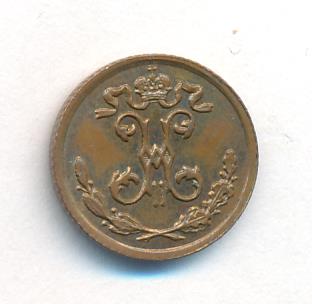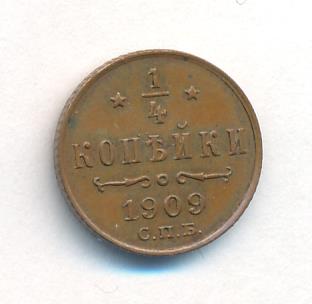 Лицевая сторона — вензель Александра II в венке из лавровой и дубовой ветвей; оборотная — обозначение номинала (1/4 копейки) и дата. Нормативный вес — 0,82 грамма, гурт рубчатый.