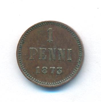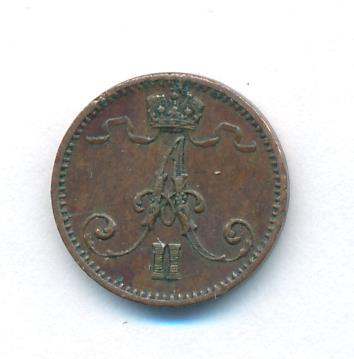 Лицевая сторона — вензель Александра II, оборотная — номинал (1 PENNIA) и дата. Нормативный вес — 1,28 грамма, гурт гладкий.