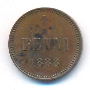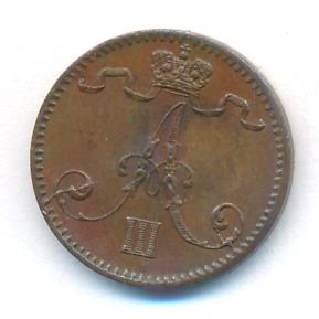 Лицевая сторона — вензель Александра II, оборотная — номинал (1 PENNIA) и дата. Нормативный вес — 1,28 грамма, гурт гладкий.