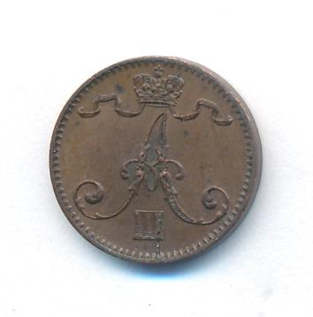 Лицевая сторона — вензель Александра II, оборотная — номинал (1 PENNIA) и дата. Нормативный вес — 1,28 грамма, гурт гладкий.