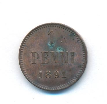 Лицевая сторона — вензель Александра II, оборотная — номинал (1 PENNIA) и дата. Нормативный вес — 1,28 грамма, гурт гладкий.