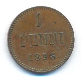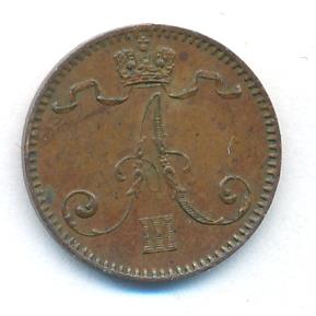 Лицевая сторона — вензель Александра II, оборотная — номинал (1 PENNIA) и дата. Нормативный вес — 1,28 грамма, гурт гладкий.