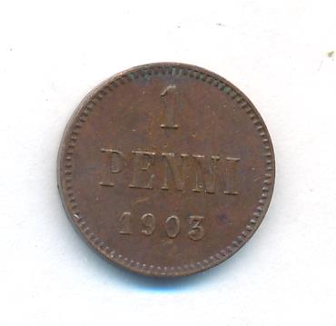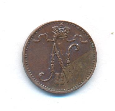 Лицевая сторона — вензель Александра II, оборотная — номинал (1 PENNIA) и дата. Нормативный вес — 1,28 грамма, гурт гладкий.