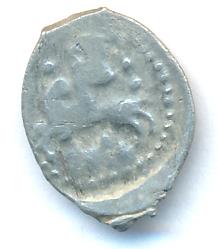 Денга. Всадник с саблей влево/ Четвероногое вправо, хвост завитком. М-0,68гр 1425-1462
