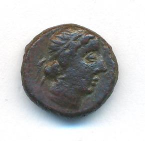 Обол. Пантикапей. Голова Аполлона/ Лук в горите. М-2,24гр 220-210 гг до н.э.