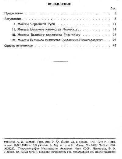 Особенности: Книга А. А. Ильина «Классификация русских удельных монет» посвящена удельной чеканке, состоит из разделов: Монеты Червонной Руси, Монеты Великого княжества Литовского, Монеты Великого княжества Рязанского и Монеты Великого княжества Суздальско-Нижегородс
