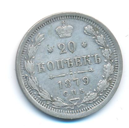 Лицевая сторона — гербовый орел, оборотная —обозначение номинала (20 копеекъ), окруженное венком из лавровой и дубовой ветвей и дата.