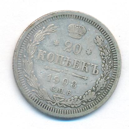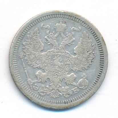 Лицевая сторона — гербовый орел, оборотная —обозначение номинала (20 копеекъ), окруженное венком из лавровой и дубовой ветвей и дата.