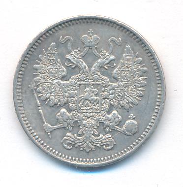 Лицевая сторона — гербовый орел, оборотная —обозначение номинала (15 копеекъ), окруженное венком из лавровой и дубовой ветвей и дата.