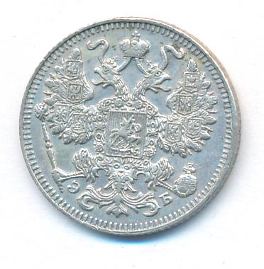 Лицевая сторона — гербовый орел, оборотная —обозначение номинала (15 копеекъ), окруженное венком из лавровой и дубовой ветвей и дата.