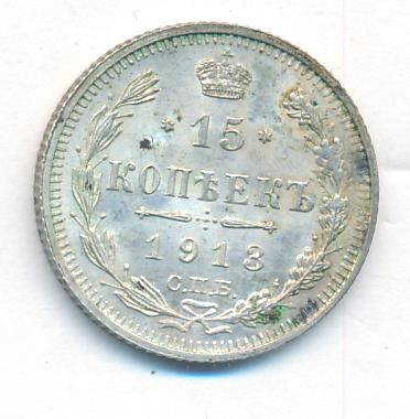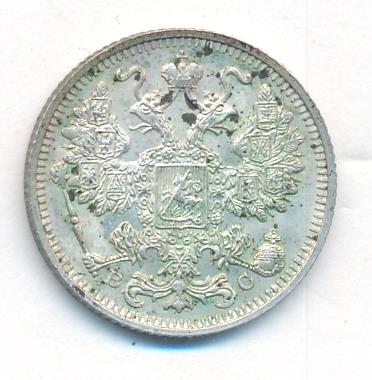 Лицевая сторона — гербовый орел, оборотная —обозначение номинала (15 копеекъ), окруженное венком из лавровой и дубовой ветвей и дата.
