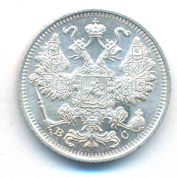 Лицевая сторона — гербовый орел, оборотная —обозначение номинала (15 копеекъ), окруженное венком из лавровой и дубовой ветвей и дата.