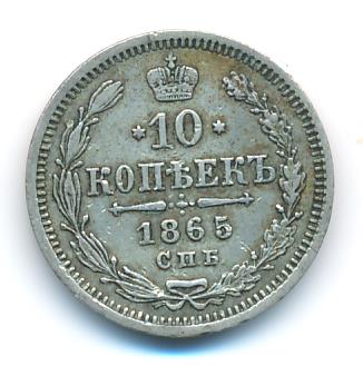 Лицевая сторона — гербовый орел, оборотная —обозначение номинала (10 копеекъ), окруженное венком из лавровой и дубовой ветвей и дата.