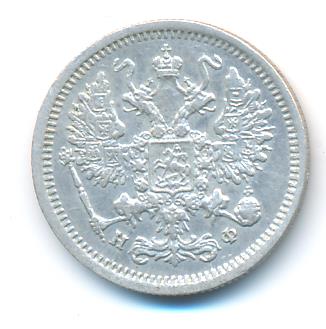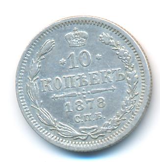 Лицевая сторона — гербовый орел, оборотная —обозначение номинала (10 копеекъ), окруженное венком из лавровой и дубовой ветвей и дата.