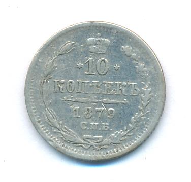 Лицевая сторона — гербовый орел, оборотная —обозначение номинала (10 копеекъ), окруженное венком из лавровой и дубовой ветвей и дата.