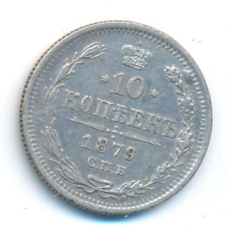 Лицевая сторона — гербовый орел, оборотная —обозначение номинала (10 копеекъ), окруженное венком из лавровой и дубовой ветвей и дата.