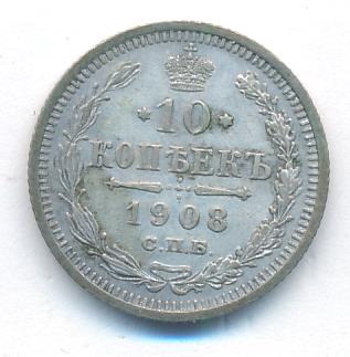 Лицевая сторона — гербовый орел, оборотная —обозначение номинала (10 копеекъ), окруженное венком из лавровой и дубовой ветвей и дата.