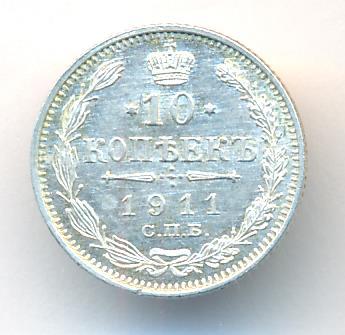 Лицевая сторона — гербовый орел, оборотная —обозначение номинала (10 копеекъ), окруженное венком из лавровой и дубовой ветвей и дата.