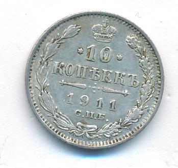 Лицевая сторона — гербовый орел, оборотная —обозначение номинала (10 копеекъ), окруженное венком из лавровой и дубовой ветвей и дата.