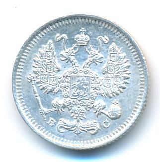 Лицевая сторона — гербовый орел, оборотная —обозначение номинала (10 копеекъ), окруженное венком из лавровой и дубовой ветвей и дата.