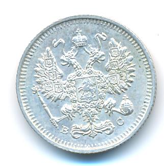 Лицевая сторона — гербовый орел, оборотная —обозначение номинала (10 копеекъ), окруженное венком из лавровой и дубовой ветвей и дата.