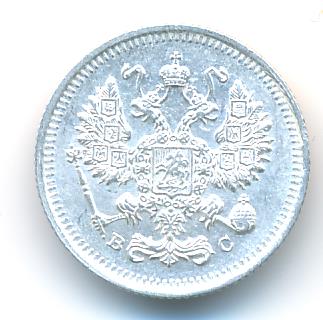 Лицевая сторона — гербовый орел, оборотная —обозначение номинала (10 копеекъ), окруженное венком из лавровой и дубовой ветвей и дата.