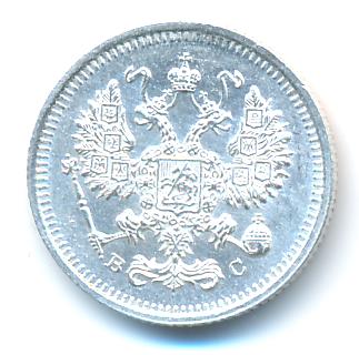 Лицевая сторона — гербовый орел, оборотная —обозначение номинала (10 копеекъ), окруженное венком из лавровой и дубовой ветвей и дата.