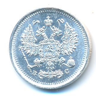 Лицевая сторона — гербовый орел, оборотная —обозначение номинала (10 копеекъ), окруженное венком из лавровой и дубовой ветвей и дата.