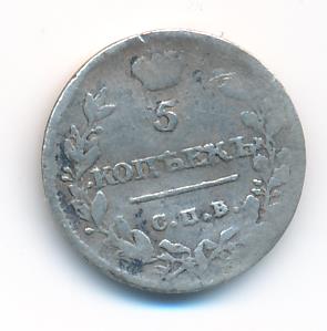 Лицевая сторона - двуглавый орел и дата, оборотная — обозначение номинала (5 копеекъ) в венке из лавровой и дубовой ветвей. Проба до 1813 года — 750, нормативный вес — 1,2 грамма; после 1813 года — проба 868, нормативный вес — 1,04 грамма.