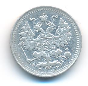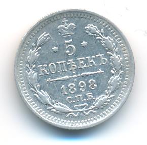 Лицевая сторона — гербовый орел, оборотная —обозначение номинала (5 копеекъ), окруженное венком из лавровой и дубовой ветвей и дата.