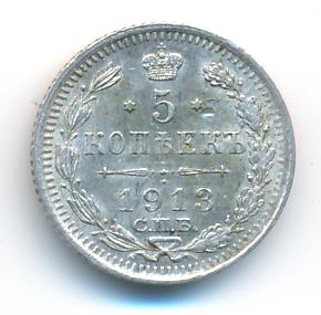 Лицевая сторона — гербовый орел, оборотная —обозначение номинала (5 копеекъ), окруженное венком из лавровой и дубовой ветвей и дата.
