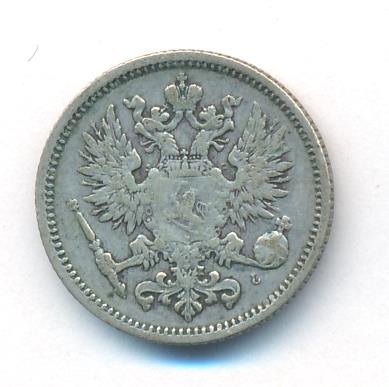 Лицевая сторона — российский двуглавый орел с гербом Великого княжества Финляндского на груди, оборотная — номинал и дата в венке из дубовых листьев. Проба — 750, нормативный вес — 2,55 грамма, гурт рубчатый.