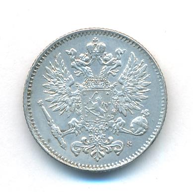 Лицевая сторона — российский двуглавый орел с гербом Великого княжества Финляндского на груди, оборотная — номинал и дата в венке из дубовых листьев. Проба — 750, нормативный вес — 2,55 грамма, гурт рубчатый.