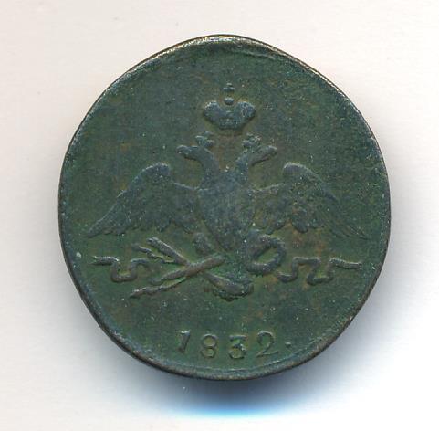 На новой серии медных монет оформление герба как на золотых (с 1817 года) и серебряных (с 1826 года), хотя еще в 1830 году было указано сделать для них орла как на платиновых. Таким образом, вышедшие в 1832 году в обращение новые медные монеты изначально имеют устаревшее оформление, а золотые и серебряные с этого же 1832 года — новое.