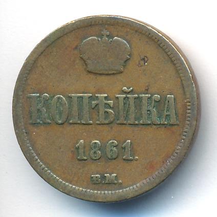 Лицевая сторона — вензель Николая I, оборотная — обозначение номинала (копейка) и дата. Нормативный вес — 5,12 грамма, гурт гладкий.