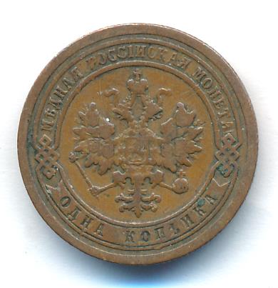 Лицевая сторона — двуглавый орел, надпись МЕДНАЯ РОССIЙСКАЯ МОНЕТА и обозначение номинала (одна копейка); оборотная — обозначение номинала (1 копейка) в бусовом ободке и дата. Нормативный вес — 3,28 грамма, гурт рубчатый.