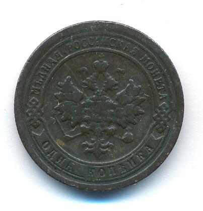 Лицевая сторона — двуглавый орел, надпись МЕДНАЯ РОССIЙСКАЯ МОНЕТА и обозначение номинала (одна копейка); оборотная — обозначение номинала (1 копейка) в бусовом ободке и дата. Нормативный вес — 3,28 грамма, гурт рубчатый.
