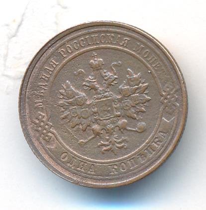 Лицевая сторона — двуглавый орел, надпись МЕДНАЯ РОССIЙСКАЯ МОНЕТА и обозначение номинала (одна копейка); оборотная — обозначение номинала (1 копейка) в бусовом ободке и дата. Нормативный вес — 3,28 грамма, гурт рубчатый.