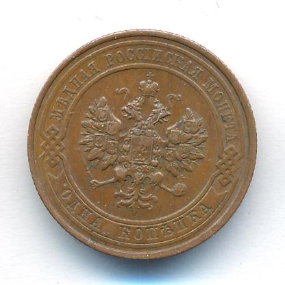 Лицевая сторона — двуглавый орел, надпись МЕДНАЯ РОССIЙСКАЯ МОНЕТА и обозначение номинала (одна копейка); оборотная — обозначение номинала (1 копейка) в бусовом ободке и дата. Нормативный вес — 3,28 грамма, гурт рубчатый.
