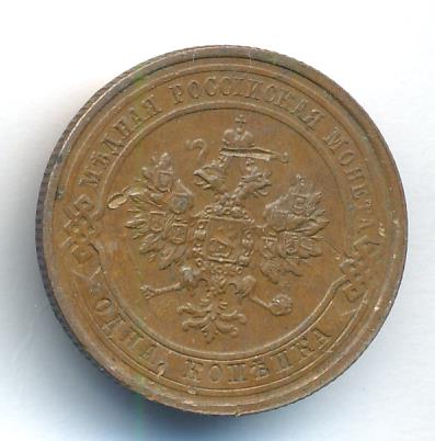 Лицевая сторона — двуглавый орел, надпись МЕДНАЯ РОССIЙСКАЯ МОНЕТА и обозначение номинала (одна копейка); оборотная — обозначение номинала (1 копейка) в бусовом ободке и дата. Нормативный вес — 3,28 грамма, гурт рубчатый.